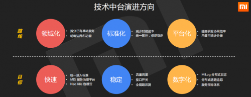 以代码为例,以前小米是以PHP开发和Java开发为主的,各种语言开发的系统层出不穷,随着业务的发展,开发语言的统一也显得非常重要,于是在小米技术中台的三年战略里,开发语言将全部统一到Java和go的开发平台上,以便于降低技术中台公共设施部分的运维开发难度。