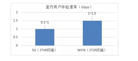 典型的室内小基站天线一般是4T4R,实际速率是1.5Gbps-2Gbps。Wi-Fi6 AP最高可以是8T8R,实际速率至少为3Gbps-4Gbps。所以,单设备的性能Wi-Fi6会优于5G。前面提到,室内Wi-Fi6比5G的单设备覆盖范围差不多相差十倍,这样平均到每个平米、每个人,5G的性能可能不到Wi-Fi6性能的十分之一。国际电信联盟认可的用户体验速率在0.1~1Gbps,而同样常规的2T2R Wi-Fi6终端体验速率可以达到1~1.5Gbps。所以,Wi-Fi6更适合室内高带宽。