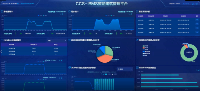 CCS-iBMS实现智能设备信息实时共享与交互控制,并通过云计算及智能分析技术,实现预测、预警、规划和引导,确保建筑物内的电力、空调、照明、防灾、防盗等业务功能。