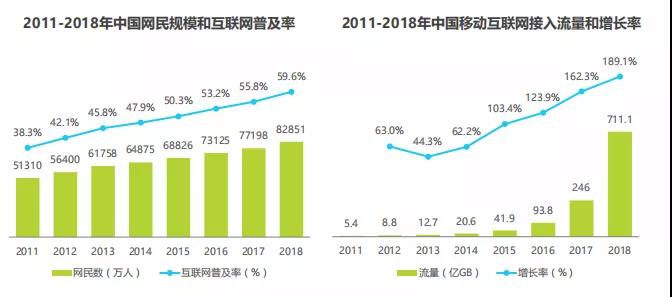 1、互联网的发展普及。用户流量增长是数据量增长的重要因素。中国网民规模由2011年的约5.1亿人,上升到2018年的约8.3亿人。与此同时,移动互联网的接入流量由2011年的5.4亿GB,增长到2018年的711.1亿GB。这些因素给作为互联网基础设施的IDC带来巨大发展红利。