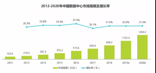在数据中心机架数量快速增加的背后,反映出我国数据中心市场规模快速扩大,其中2019年数据中心市场规模已超千亿。据中国信通院统计,2019年中国IDC业务的总体营收已达1132.4亿元。未来,受益于5G技术的日益成熟与普及、互联网行业的持续高速发展等因素,国内IDC行业仍将保持30%以上的年复合增长率。