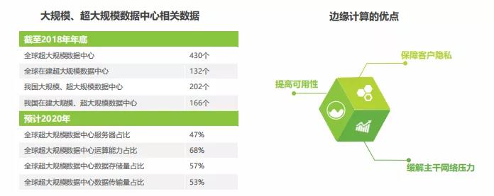 目前,数据中心东西向流量已经超过南北向流量,因此大规模、超大规模数据中心不仅能体现规模效应,还便于服务器的云化和虚拟化。加上DCIM和智能巡检机器人等技术,超大规模数据中心的运维得以简化。不管是全球还是国内,超大规模数据中心的占比不断提升。与此同时,在5G带宽大幅增加且天然支持网络切片的推动下,离数据产生和处理场景更近的边缘节点也将越来越多发挥中心节点无法替代的作用,在场景需求密集区域,有望成为稀缺资源。