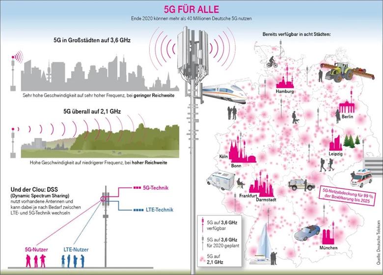 在德国,不只是沃达丰,德国电信也在重耕3G频段,只不过,他们将腾出的3G频段不只用于4G,还要用于5G。