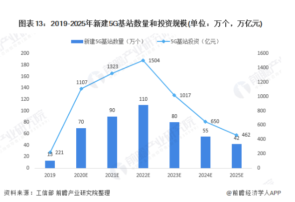 根据工信部数据,截至2019年底我国共建成5G基站超13万个,预计2020年我国将建设超过60万-80万个5G宏基站。