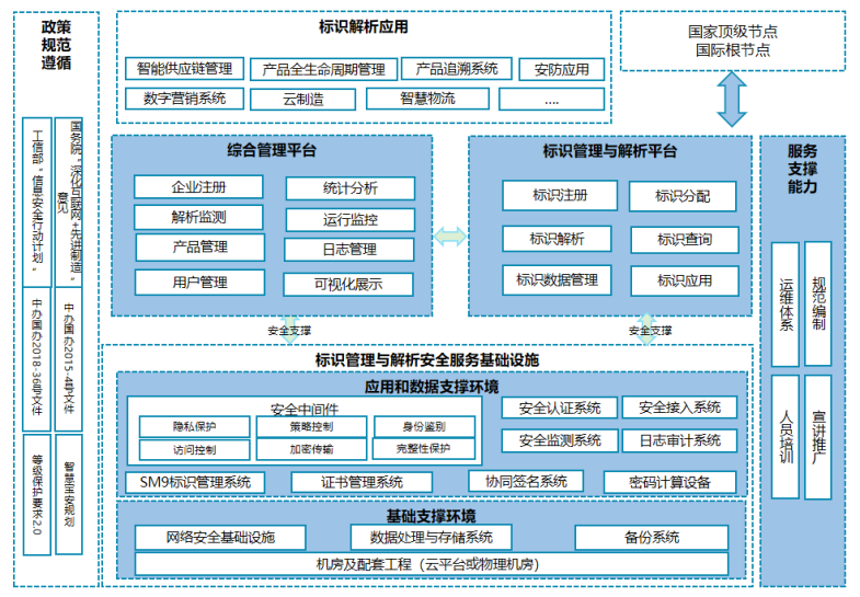 建设方案遵循国务院、工信部相关文件精神,遵循公安部等级保护2.0和国家密码管理局信息系统密码应用要求等标准,围绕工业互联网标识解析安全技术及设备工程化需求,基于密码技术为工业互联网标识解析构建安全体系,保障工业互联网标识解析应用的安全运行。