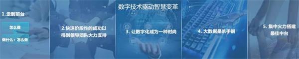 第三个方面是企业文化变革,要用数字技术来改变我们公司的组织方式,改变公司的决策方式,让数字化的思维深入人心。这三个是我们着重打造的三个方面,接下来我们来具体看一看每个方面。