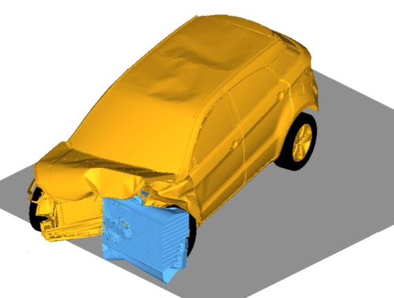 图1利用LS-Dyna模拟计算汽车发生正面偏置碰撞时车辆变形情况