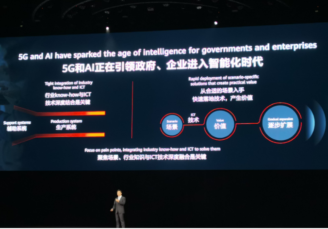 他指出,落到具体政府和企业场景,我们看到联接发生了变化,1G到4G解决了人与人联接问题,5G开启了新的万物互联的时代;计算的重心慢慢转到AI,已经确确实实在政府和企业的主业务中创造了价值。联接和计算需要跟行业深度结合,找到可以落地的场景,对准生产系统中的痛点,通过ICT技术和行业知识的结合,快速创造价值。当我们把这些场景汇聚起来,便能涓滴成河,逐步完成整个宏伟蓝图。
