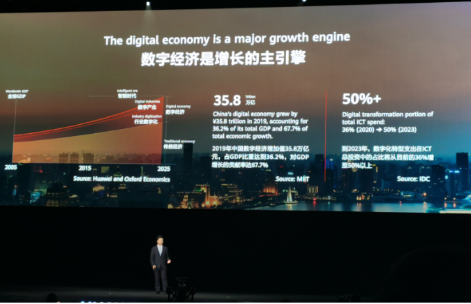 我们看到,数字经济是经济增长的主旋律。牛津经济研究院的报告显示,数字经济早已成为增长的主引擎,不仅是数字产业本身的增长,更多的是数字技术带来的行业数字化增长。1块钱的数字技术投入,可以带来3块钱的行业数字化增长。以中国为例,去年中国数字经济增加值占GDP约三分之一,但是对增长的贡献达到三分之二。我们看到,来自政府和企业的数字化新需求不断地涌现。