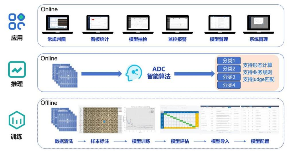 缺陷检测与分类通过获取MES(企业生产过程执行管理软件)、SPC(统计工序控制)、FDC(缺陷分类控制)、DFS(数据归档系统软件程序)等系统的图像信息,基于自主研发的AI分析引擎提供产品缺陷检测与分类服务,能够全链路打通数据采集、标注、训练和部署环境,通过深度学习和图像处理算法,自动识别产品缺陷和完成缺陷分类、缺陷严重性判级,大幅降低缺陷检测的人力成本,提高生产效率,提升工厂数智化水平。