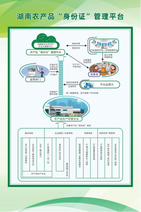 1.追溯管理。遵循农产品生产技术标准和数据规范,依托国家农产品追溯平台省级应用模块,融合湖南农产品“身份证”管理平台、承诺达标合格证等数据资源,实现农产品质量安全全程控制和追溯管理;通过对数据要素的汇聚、治理和利用,有效实施“网格化”管理,加强风险评估、监测预警和信用管理,不断提高监管效能。同步开发“智慧湘农”小程序,实现“掌上查”“掌上办”,让手机成为“新农具”,数据成为“新农资”。