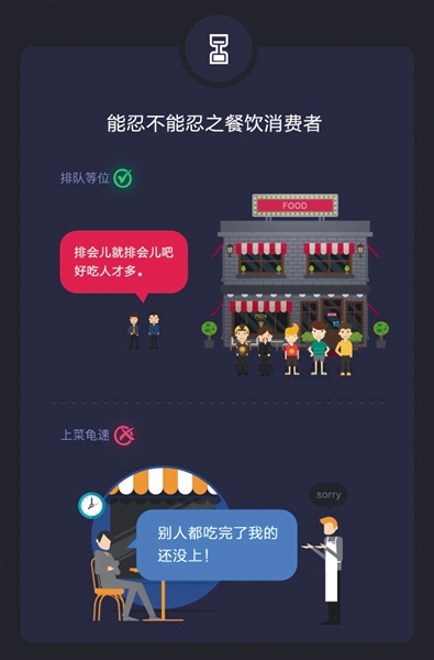 相比口味和环境,消费者更为注重服务质量。分析显示,用户大多可以忍受排队等位,但却不能忍受“龟速”上菜。