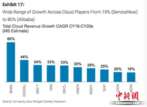 中新网4月1日电 近日,多家投行发布行业报告看好云计算行业增长,摩根士丹利认为云计算将成为电力一样的革命性技术,云计算厂商均被市场低估,其中未来四年谷歌和阿里云市场份额将大幅扩张。