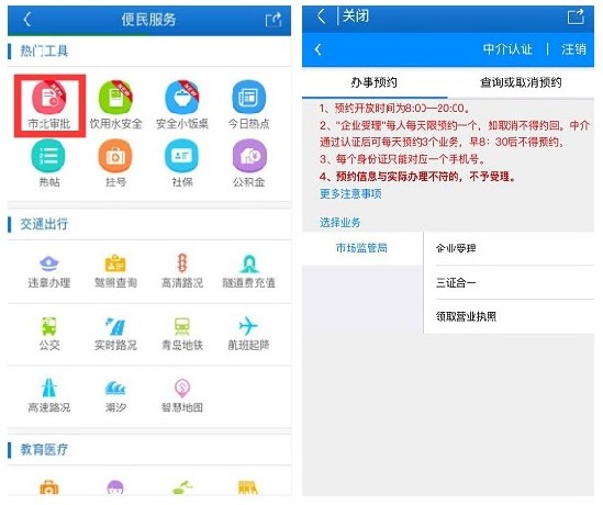 除了将行政服务搬上网站,市北行政审批大厅进一步将服务搬进了手机,让企业、市民用手机就可以随时随地办理业务。目前,市北行政审批大厅三大业务——企业受理、三证合一、领取营业执照已进驻智慧青岛APP便民服务栏目。企业和市民今起可以在手机上就能办理这几项业务,无需再跑腿、排队、等待。