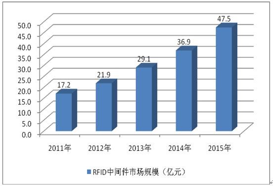 OFweek物联网讯 2014年RFID中间件市场规模为36.9亿元,2015年产业规模增长至47.5亿元,占RFID产业总量的12.2%。