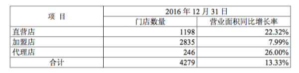 其中,百货商店收入由2015年的32.63亿元略增为2016年的35.40亿元,但占比却有所下降,从2015年的37.05%到2016年的35.78%,但依旧是最大销售渠道。