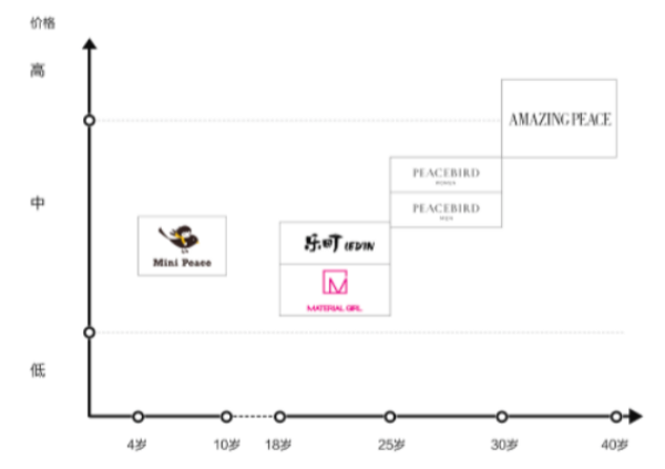 2、多品牌战略。目前,太平鸟服饰旗下的6个品牌形成品牌矩阵,在性别、年龄、价格上形成梯度,有效覆盖目标客户群,有利于各个品牌更精准的顾客定位,通过产品宣传来扩大市场份额。同时,品牌内部形成良性竞争,间接提升品牌形象力。
