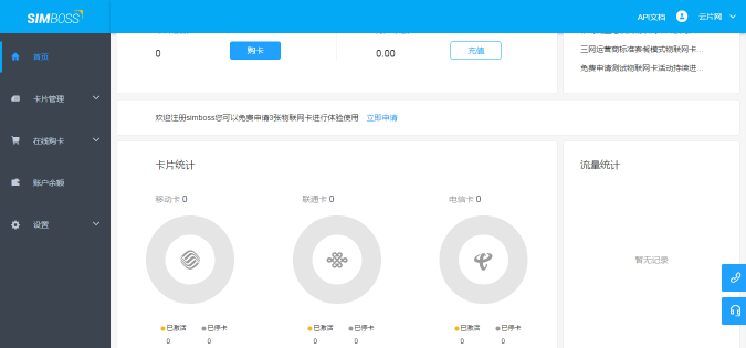 智能POS机需要完善的结算系统,SIMBOSS高效物联网卡管理平台让总卡量、激活量、当月所有卡的累积流量、套餐流量使用情况、当前账户余额等数据清晰可见,帮助使用者方便快捷管理所购买的物联网卡。