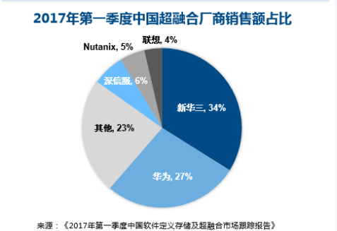 IDC中国指出,从大陆市场竞争厂商角度看,既有深耕多年的传统大陆国产厂商,也有成熟完备的国际厂商,还有刚成立不久的大陆国内初创公司,中国软件定义储存及超融合市场经历近两年的飞速发展已呈现出百花齐放格局。2017年第一季软件定义储存市场排名前列的厂商主要有华为、曙光、浪潮、联想、IBM以及大陆国内初创公司,例如XSky。超融合市场排名前列的厂商则有新华三、华为、深信服、Nutanix、联想、EMC以及初创公司SmartX。