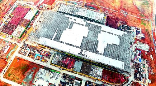8月22日,位于武汉东湖高新区未来科技城的国家存储器基地项目建设工地上一片繁忙。国家存储器基地主要生产三维闪存芯片,广泛应用于手机、U盘、电脑、服务器等电子设备。该项目总投资1600亿元,总占地1968亩,是中国集成电路行业单体投资最大的项目,将于2018年底建成投产。