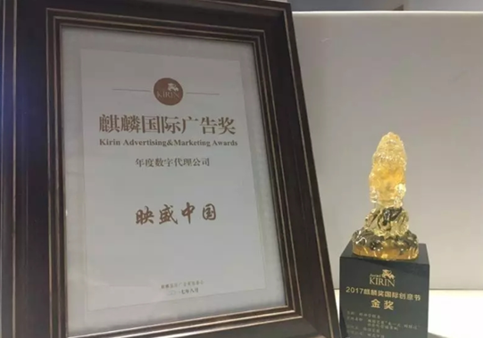 “2017麒麟奖国际创意节•麒麟奖•年度数字代理公司大奖”该奖项是组委会以及行业对映盛中国近一年来在数字营销领域的突出表现、及能够有效帮助客户在整合营销中取得优异成绩的肯定。