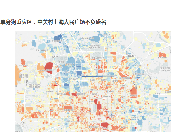 北京的单身狗主要聚集在西北区域(以上地为核心)及高校区域,重灾区分别是中关村软件园、北航、北理工、天通苑等。北京二环则是已婚人士的天下。另外,阿里巴巴友情提醒,不想被暴击,别去蓝色港湾、北京动物园、颐和园等地方。
