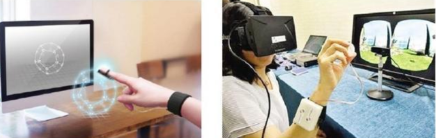 3D触觉技术使用了一幅虚拟现实头盔和佩戴在手腕上的小盒子,后者会和连接指尖的装置,硬币形状的装置、棒子或者笔相连。这套系统可让用户“感觉”到虚拟物体,比如按键的阻力。