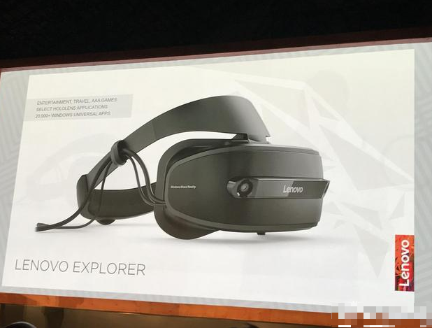 先说第一款VR设备,这款设备名为Lenovo Explorer,它是基于微软MR平台开发,需要连接个人电脑使用。设计上,这款设备配有两个手柄,有点类似于HTC vive。其中重量为380克,覆盖110°可视角,采用了类似PS VR的悬挂式设计,能够轻松方便地佩戴。