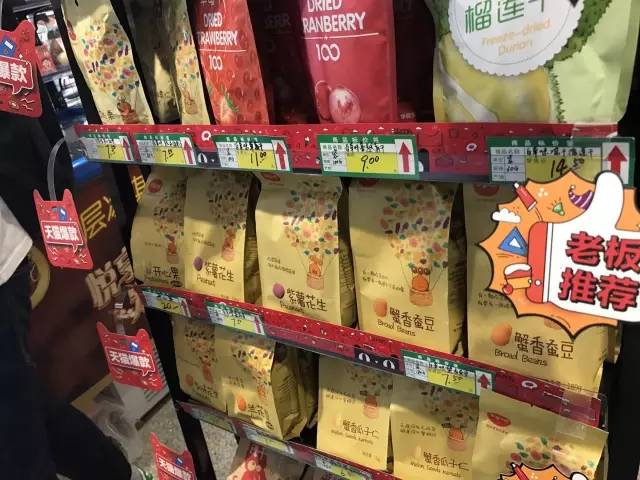 1、超市货品陈列不一样了,放了很多周边小店买不到的网红食品。
