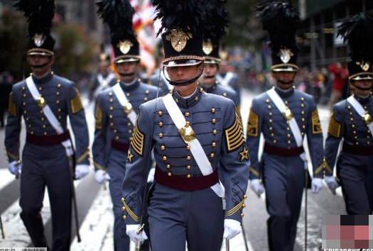 资料图:当地时间2013年11月11日,美国纽约,美国军人和各界人士在曼哈顿五大道举行大规模游行,纪念第92届“老兵节”。1919年,时任美国总统伍德罗·威尔逊将11月12日确定为“停战纪念日”,此后每年11月11日被确定为全国法定假日,并更名为“老兵节”。图为美国军事学院的学员参加游行。