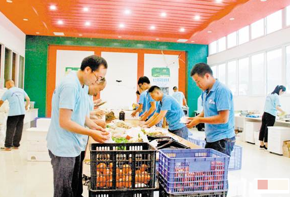 9月5日,是彭水县电子商务产业园多家企业的集中配送日,记者在现场看到,近百名物流分装人员正有序地对各类农产品进行分拣,并配送上车。