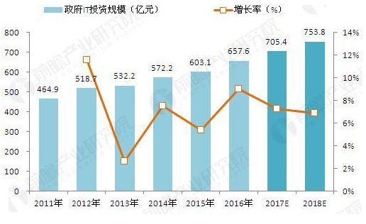 政府在电子政务的大手笔投入成为“智慧检务”发展的有利依托,根据前瞻产业研究院发布的《2017-2022年中国智慧城市建设发展前景与投资预测分析报告》数据显示,2016年作为“十三五”规划周期中承上启下的一年,许多项目开始陆续上马,政府IT投资增长速度明显加快,增速为9%,达到657.6亿元。