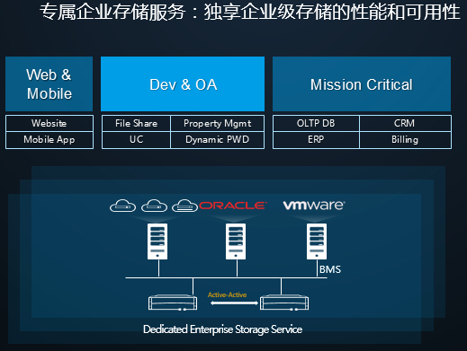 华为在业界率先发布专属企业存储服务(DESS),帮助企业关键业务代码零改造上云,华为企业存储全球部署规模已超过5000PB,服务全球150+个国家7000+家客户,2016年进入Gartner存储领导者象限,现将企业存储能力无缝移植到华为云,将公有云的便捷、灵活与成本优势与企业级存储的高可靠、高稳定及高性能相结合,用户在获得企业级存储高可靠性的同时,也享受公有云的便利性。