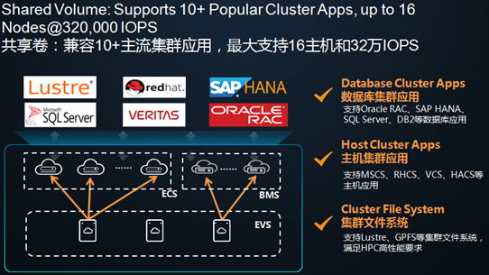 华为云共享云硬盘全面覆盖各类主流集群应用,让Share-everything集群应用无缝上云成为现实,兼容数据库集群、主机集群、集群文件系统,单盘最大容量32TB,最多可挂载到16个云服务器,IOPS支持线性扩展,并发随机访问高达32万IOPS,随时在线扩容,业务零中断,性能线性增长,结合10GB小容量盘起步,实现按需购买,降低客户投入成本。