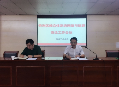 为加强秀洲区教文体系统网络与信息安全工作,进一步明确各单位网络与信息安全工作的任务和要求,9月26日下午,秀洲区召开了教文体系统网络与信息安全工作会议,全区各中小学、成校、幼儿园、研训中心、文化馆分管领导和各单位网络信息安全管理员70余人参加了会议。秀洲区教文体局钱凤州副局长出席会议、电教馆张叶飞主持会议。