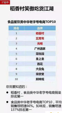 据了解,稻香村集团在天猫、京东等自营平台连续四年名列中式糕点行业销售第一位。2016年阿里数据研究院数据显示,稻香村(苏稻)位列食品类中华老字号电商销量第一。稻香村集团与时俱进,在新的营销时代中,借助电子商务的发展,销量区域覆盖全国,让更多的消费者通过电商渠道全面认识了解了这个有着244年历史的中华老字号稻香村。