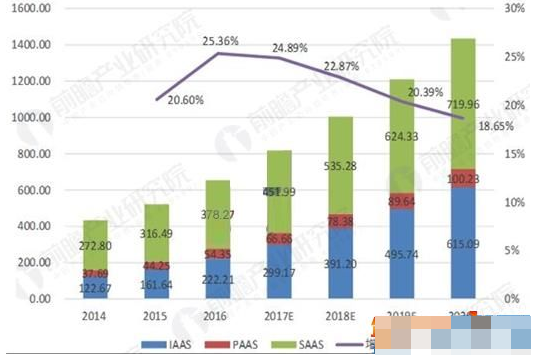 目前,全球云计算市场总体平稳增长。据前瞻产业研究院发布的《云计算产业发展前景预测与投资战略规划分析报告》数据显示,2016年以IaaS、PaaS和SaaS为代表的典型云服务市场规模达到654.83亿美元,增速20.6%,预计2020年将达到1435.3亿美元,年复合增长率达22%。