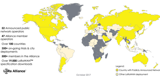 “我们已经走到了一个关键的历史节点。现在已经来到2017年下半年,我认为,2018年一定会是物联网的成功之年。”Geoff Mulligan不无兴奋地向我们表示,到今年年底,LoRa联盟成员中兴克拉将新增10个城市级LoRa网络覆盖,届时中国将有超过13,982个LoRa网关和153,000个LoRa节点进行安装。