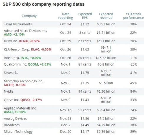 10月24日消息,高端智能手机的推出和数据中心增长预计将为芯片制造商以及相关公司带来又一个利润强劲的财报季,同时也将推动半导体公司股价强劲上涨。