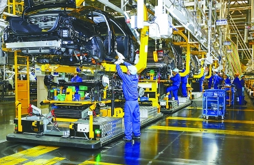 “大家看到的是一辆辆车在移动,它们背后连接着26台套核心系统,所有装备智能互联,再加上后台大数据中心的智能决策,共同形成了我们的数字化智能工厂。”南汽信息系统部部长陈峻说,“如今,我们的不少车间都已是机器人唱主角。比如,涂装车间新增了70多台机器人,自动化率达76%,喷涂、涂胶等环节已全面实现自动化操作。车身车间已有300多台机器人,自动化率接近100%。总装生产线因为个性化要求比较多,暂时还不能以大量机器人取代工人,但经过智能化改造,生产效率也有了极大提升。”