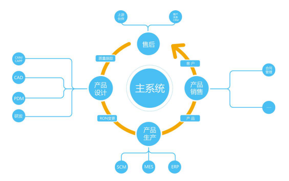 企业在信息化实践中,实现从产品设计到产品生产、产品销售、售后的全流程自动化管理。整个流程管理系统,横向打通合作,纵向打通管理,实现端到端的并行制造。