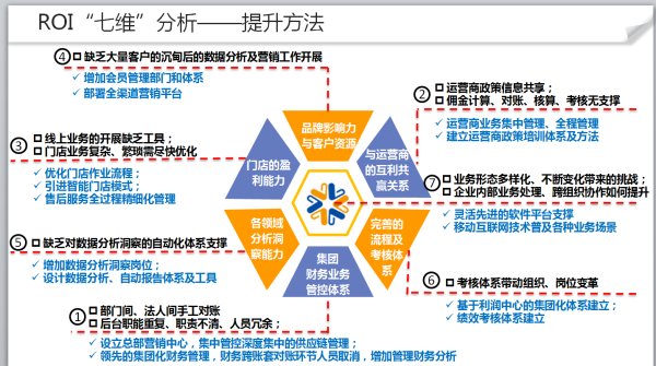对于ROI计算最大的难度是量化收益。到目前为止,最容易量化的收益就是降低的成本。对殷鹏来说,他更愿意用构建ROI(投资回报率)模型来衡量IT项目价值。他表示,IT价值可从节省成本、扩大市场、增加效率三个大维度衡量,每个维度又有一些小维度,比如成本包括控制风险成本、沟通成本、时间成本、空间成本、财务成本、人力成本等等。而ROI可以从以下七个维度来进行衡量。