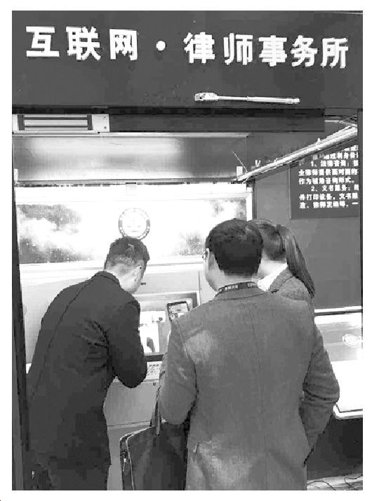 现场工作人员告诉记者,“互联网律所”目前已有近4万名律师入驻,可以投放至法院立案庭、法律援助中心、交通事故处理点以及居民小区等场所。除法律咨询外,当事人可以在线阅览律师草拟的法律文书,还可以在终端机上快速打印出来。由于律师资源得到有效利用,整体服务价格降低。