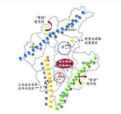 两区,即商贸、工业企业电商应用示范区与新型电商物流集聚区。罗庄区、高新区打造商贸、工业企业电商应用示范区;沂南县建设新型电商物流集聚区。