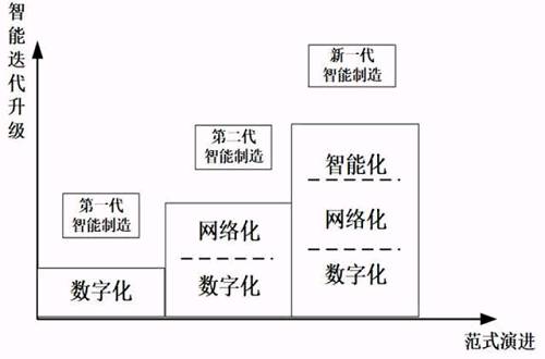 广义而论,智能制造是一个大概念,是先进制造技术与先进信息技术的深度融合,也是一个不断演进的过程和大系统。工程院提出来三个范式:第一个是数字化,数字化+网络化纳入第二代智能制造,新一代智能制造则是数字化、网络化、智能化。