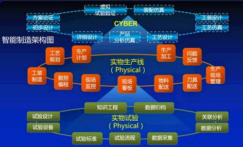 没有问题后,首先映射到生产过程中,过去是手工生产线,现在要建成数字化生产线,未来还要建成智能化生产线。这一切都是从赛博空间到物理空间的映射结果。