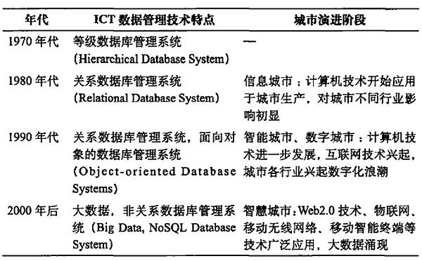 表1 ICT数据管理方法与新型智慧城市的演进与关联
