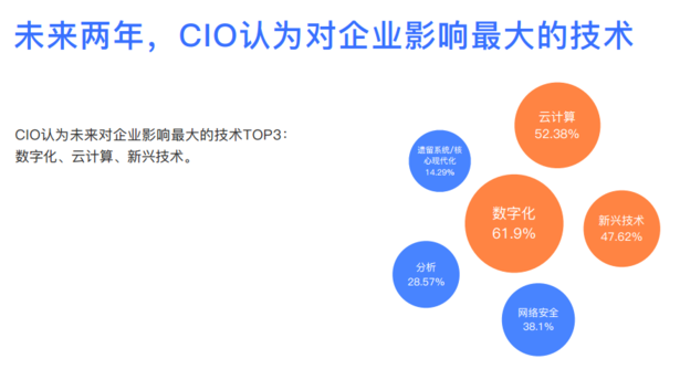 另外,目前多数企业CIO会参与企业高层决策,侧面反映出数字化战略、信息技术在当今的企业中受到了足够重视。