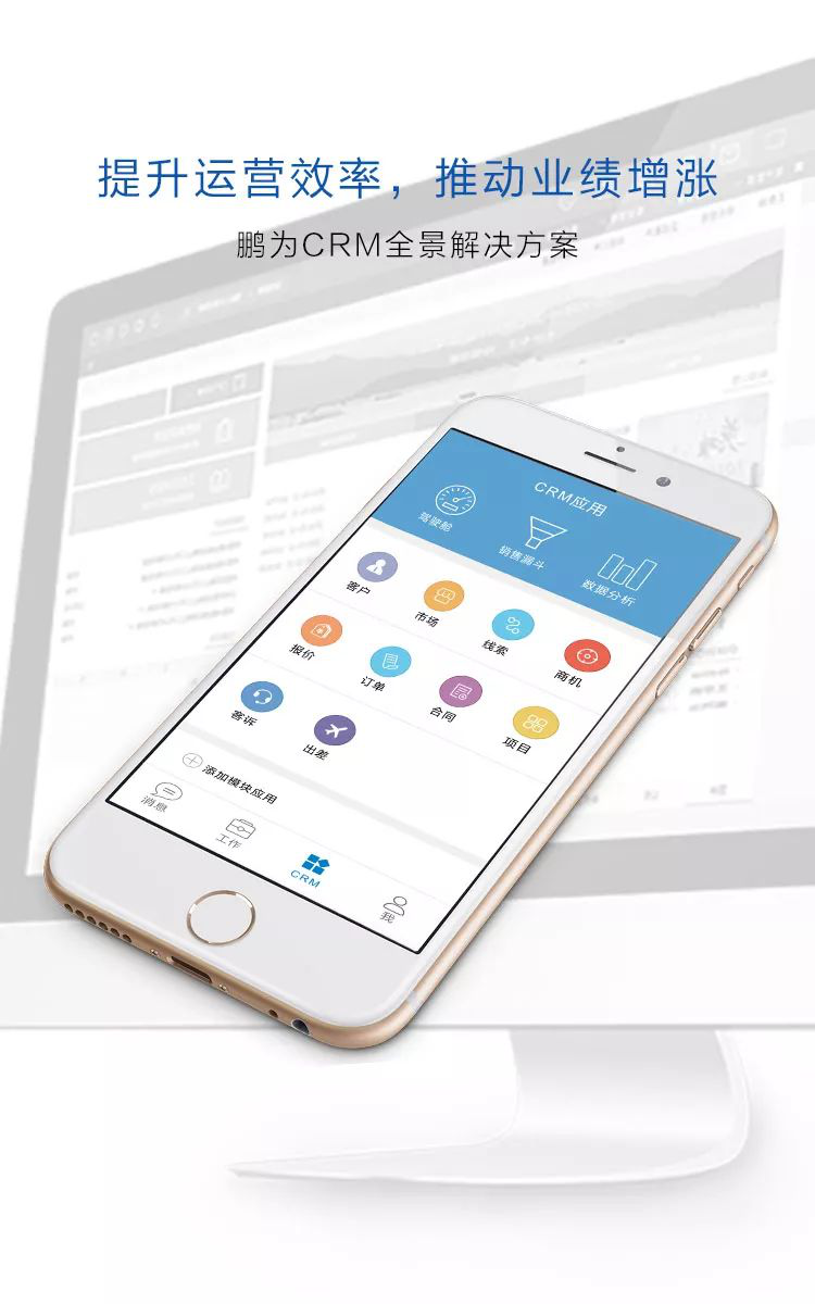鹏为软件股份有限公司——中国领先的CRM软件服务提供商,创立于2005年,专注于CRM软件产品、解决方案及技术服务的创新型领军企业,国家高新技术企业、深圳市高新技术企业、广东省自主创新示范企业、深圳市软件协会副会长单位。总部位于深圳,并在北京、天津、广州、南京、武汉、成都、青岛、郑州、石家庄、扬州等地设有分子公司,并在南京设有研发中心。秉承“让管理更简单”的价值理念,借助移动互联的新思维与新技术,不断发掘新的商业模式,不断提升管理模式与管理水平,不断提升核心竞争能力。
