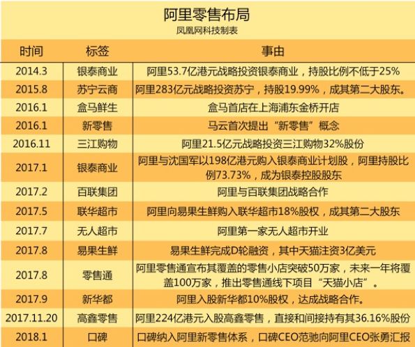 马云在2016年10月提出“新零售”的概念之后,基于此,阿里在线下零售的布局也最快最深。